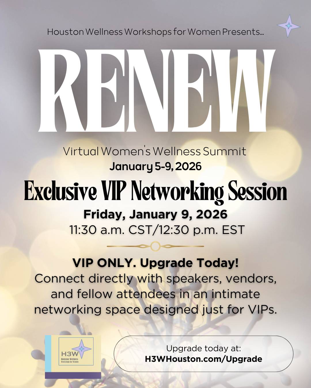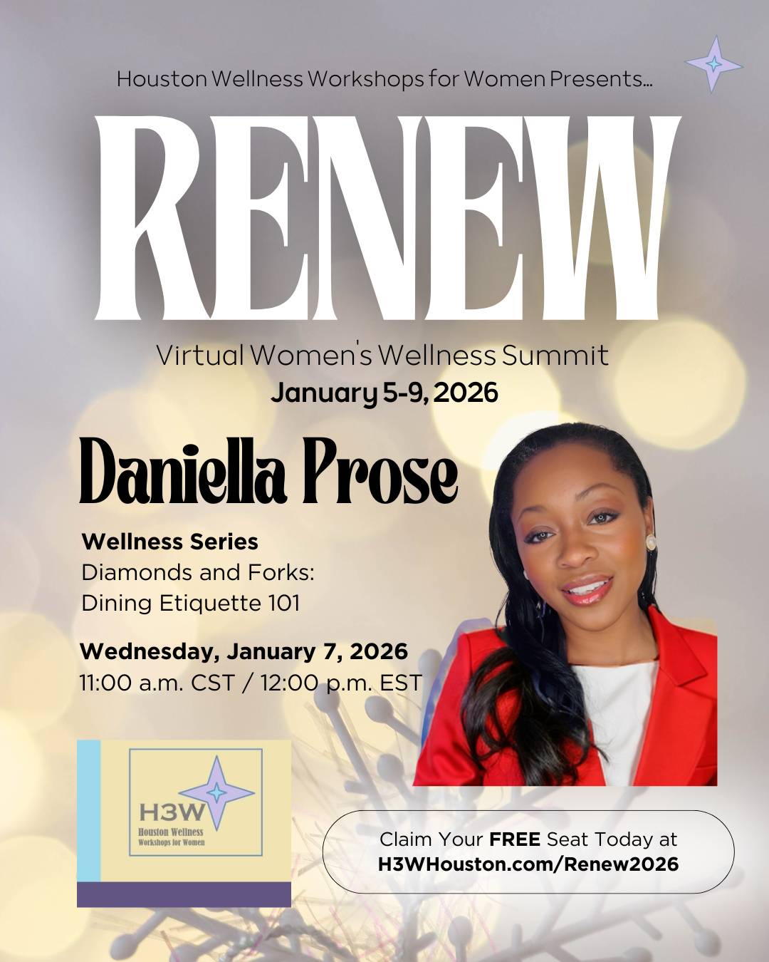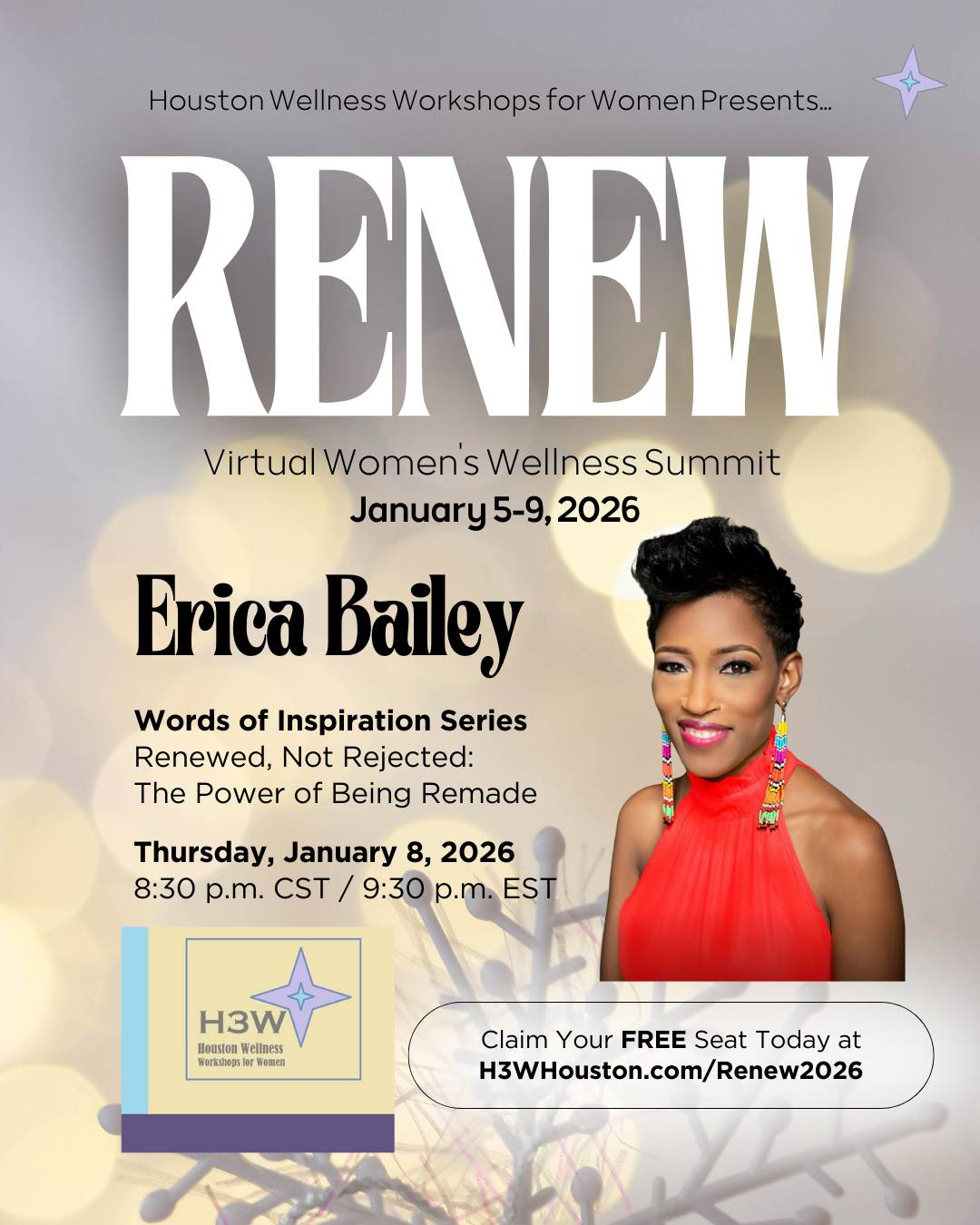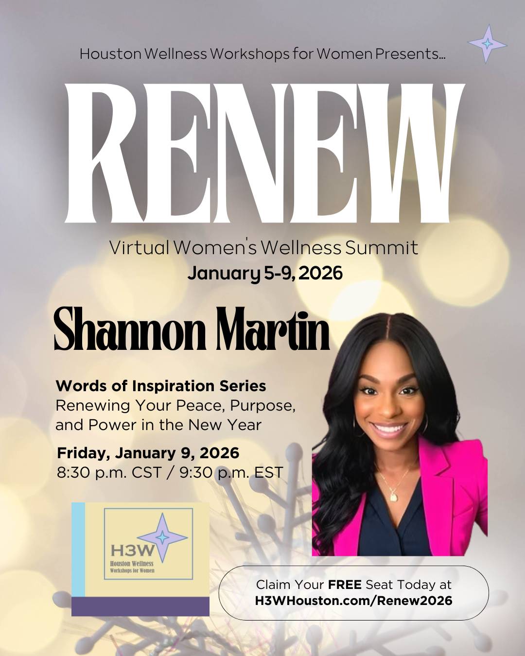 Hosted by Karla J. Aghedo, Attorney and Executive Wellness Mindset Coach, the 5-Day Power Up! Q1 Mindset Challenge starts at 8am CT/9am ET every morning of the Summit in the H3W Chics private Facebook Group (invitation to the group sent after registration).