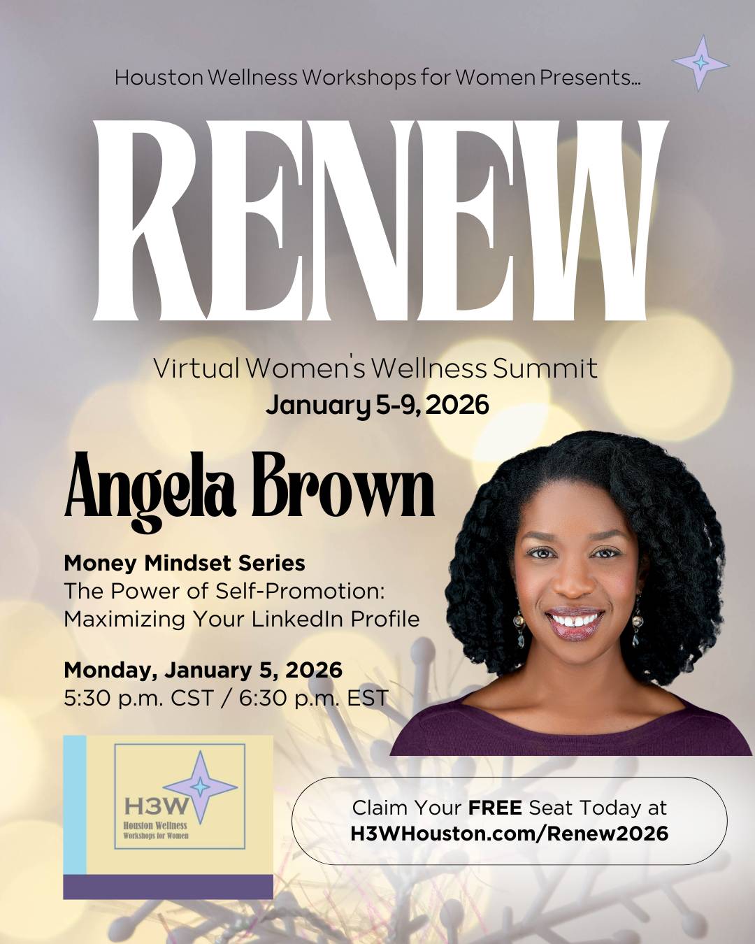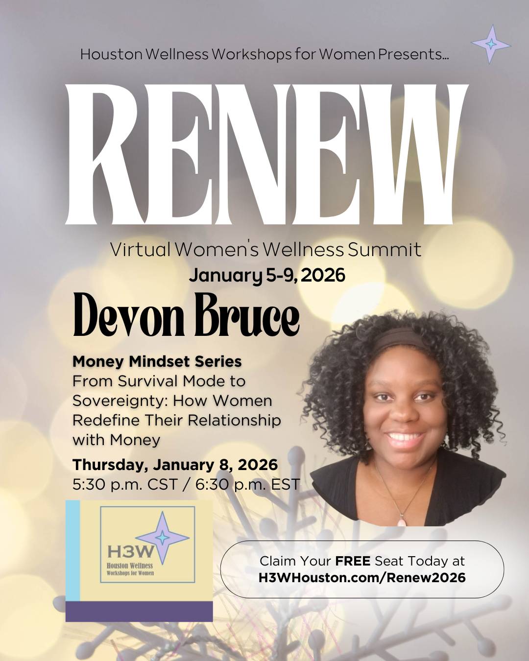 Meet the incredible speakers who will join the virtual stage to host over 20 sessions focused on wellness of mind, body, and spirit - and finances! There’s something for every woman who’s ready to renew her mental, emotional, spiritual and financial wellness to achieve her goals...